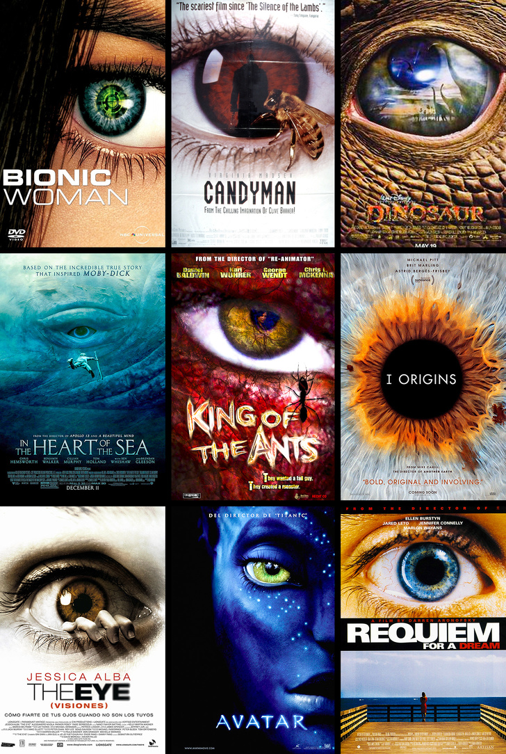 - В колажі — постери до фільмів: «Біонічна жінка» (2007); «Кендімен» (1992); «Динозавр» (2000); «В серці моря» (2015); «Король мурах» (2003); «Я — початок» (2014); «Око» (2008); «Аватар» (2009); «Реквієм за мрією» (2000).