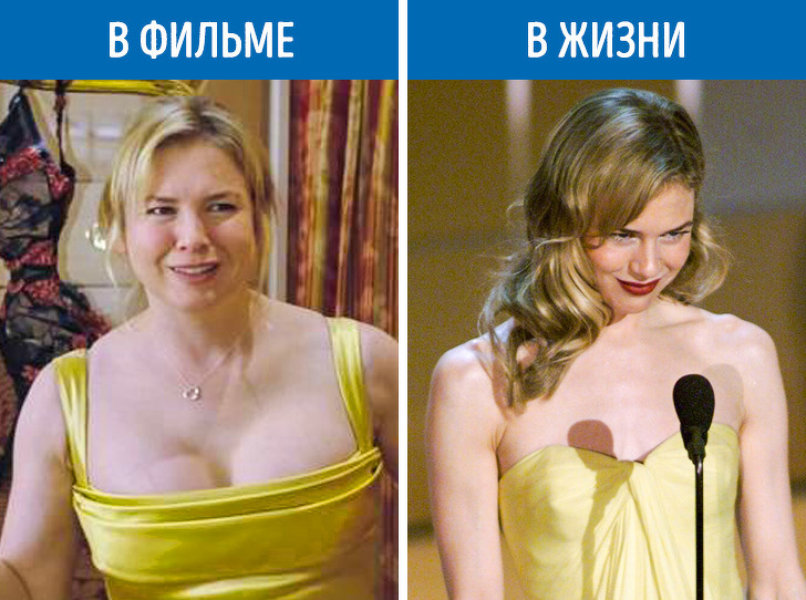 - Ще однією «фішкою» актриси під час зйомок став вага: вона набирала від 7 до 13 кг. Особливо доводилося налягати на випічку. Одна з компаній — розробників дієт навіть запропонувала контракт: приблизно $ 240 тис. за кожен зайвий кілограм, який Зеллвегер втратить після зйомок за їх методикою.