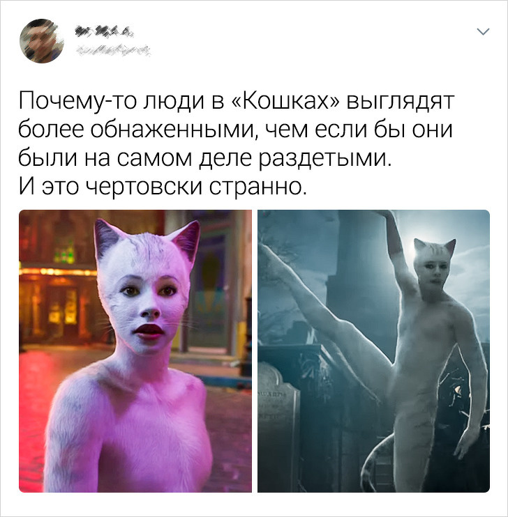 Які емоції викликають у вас кішки з людськими тілами та особами? Може бути, ви пригадуєте такий же дивний фільм?