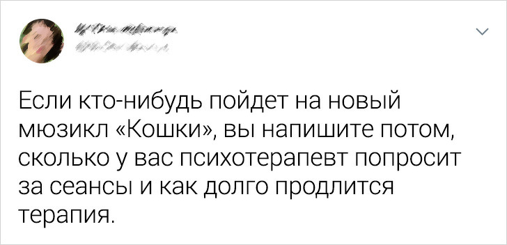 - вас недопугали в дитинстві, а король жахів Кінг, на вашу думку, вже не той: мюзикл «Кішки» може скласти гідну конкуренцію старому доброму «Кладовища домашніх тварин»;