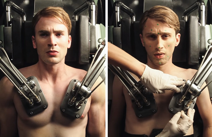 У фільмі «Перший месник» роль Стіва Роджерса до трансформації насправді грали два актора. Кріс Еванс відповідав за голову персонажа, а Леандер Діні — за тіло. Примітно, що навіть худий Діні був вище ростом і крупніше, ніж замислювався персонаж, так що доводилося зменшувати і його теж. А щоб сцени виглядали максимально достовірно, кожну знімали по 3 рази: з Евансом, з Діні і взагалі без акторів.