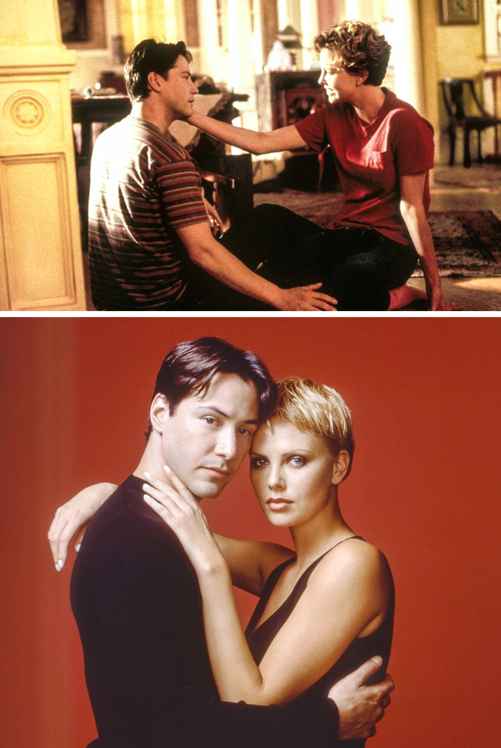 Ці актори зустрілися на знімальному майданчику «Адвоката диявола» в 1997 році, але тільки в 2001-му, працюючи над картиною «Солодкий листопад», вони по-справжньому перейнялися один одним. На жаль, відносини Кіану і Шарліз тривали недовго.