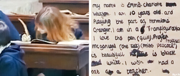 - Під час сцен на уроках Емма Уотсон робила реальні записи гусячим пером — це допомагало їй ні на секунду не виходити з амплуа відмінниці.