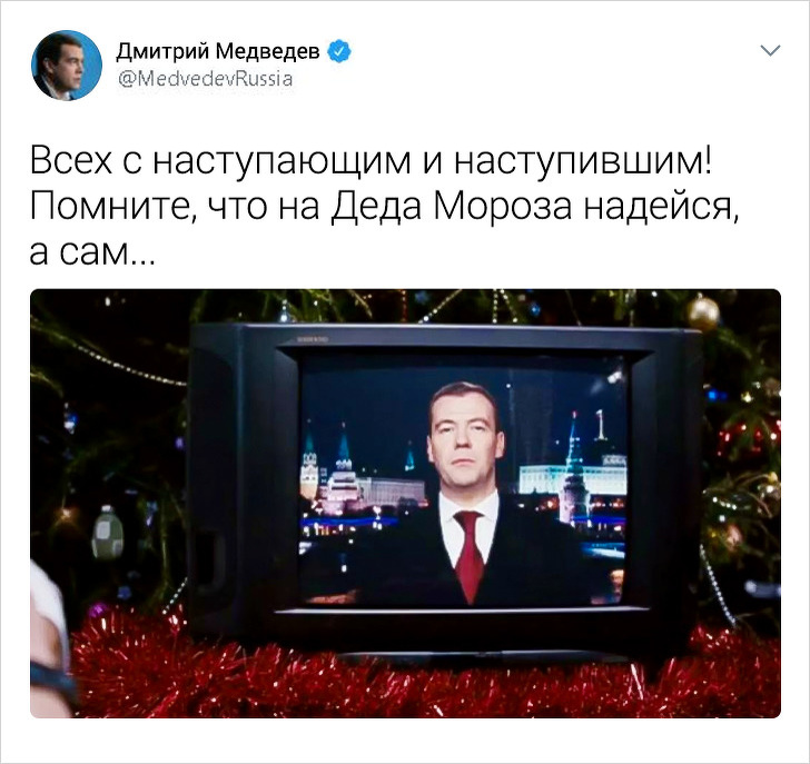 - Творці перших «Ялинок» запропонували в той час президенту Дмитру Медведєву взяти участь у зйомках. Він відмовився, але записав свій голос для вітальної промови. А картинку довелося створити з допомогою комп'ютерної графіки.