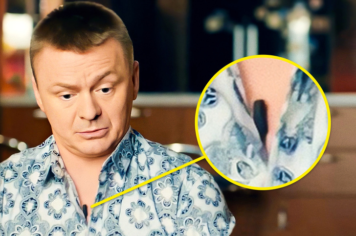 - У серіалі «Фізрук» в кадрі нерідко можна помітити дроти, камери, мікрофони. Як, наприклад, в цій серії, коли під час розмови з Поліною з-під сорочки Психа стирчала петличка.
