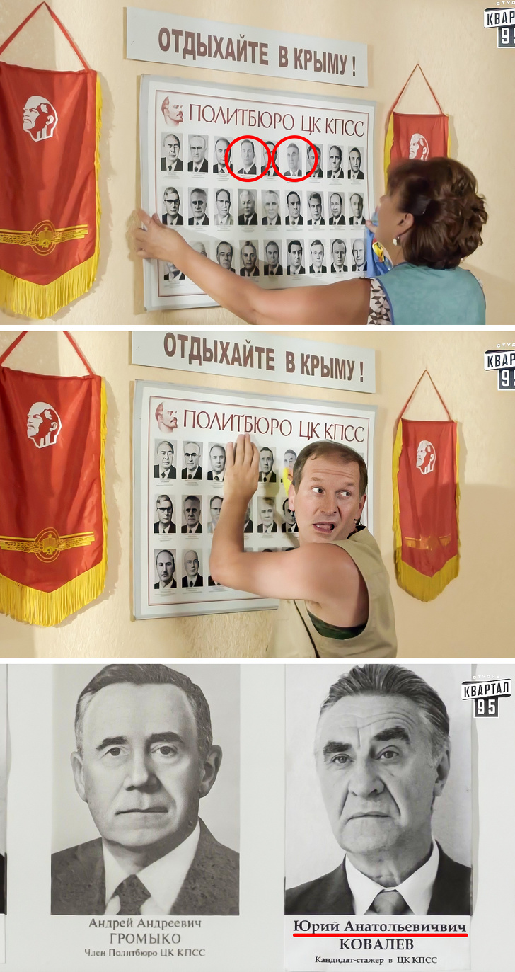 - Це справжній комболяп. На початку 3-ї серії 4-го сезону Валентина вішає на стіну плакат. На ньому вже можна побачити фотографії Івана і Юрія. Хоча задумувалося, що Будько наліпити їх тільки в наступних кадрах. А друга помилка пов'язана з неправильно написаним по батькові Ковальова.
