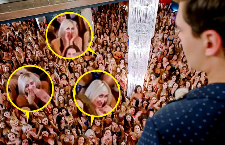 - На перший погляд здається, що під балконом стовпилося багато прекрасних дівчат. Але якщо придивитися уважніше, можна побачити, що одні і ті ж дами з'являються в цьому кадрі кілька разів. Ми виділили блондинку з каре, знайдете інших?