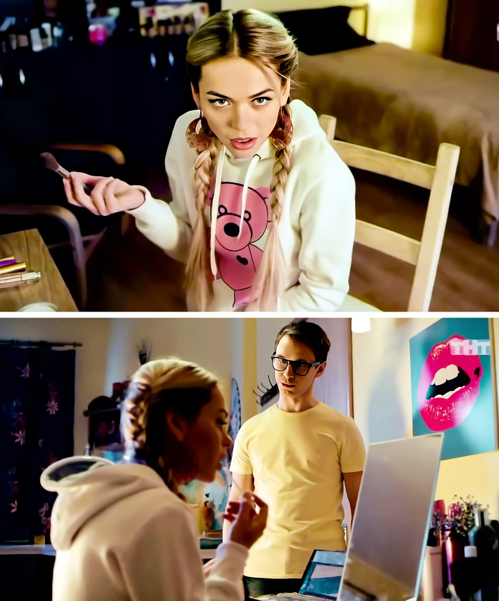 - Коли Тимур підходить до Поліни, вона ставить стаканчик з кавою перед собою. Після фокусування камери на спинах героїв він магічним чином телепортується і знаходиться вже праворуч від папки з історією хвороби.