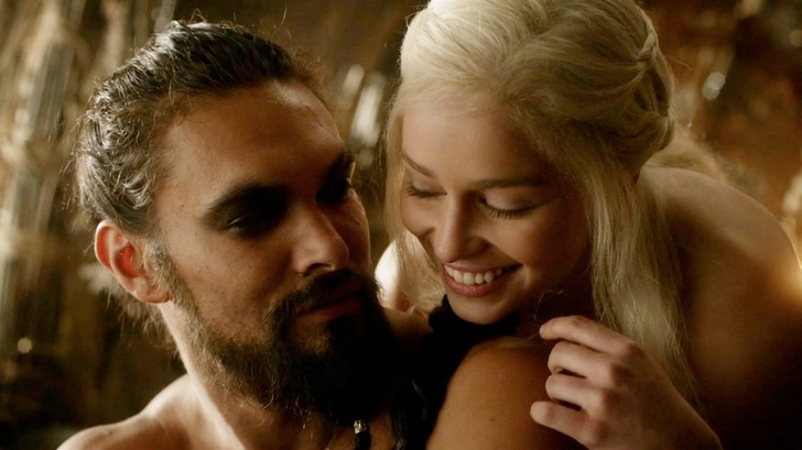 «Гра престолів» вважається одним з найбільш відвертих серіалів на сучасному телебаченні. Іноді пікантні сцени супроводжувались курйозами. Так, зірка «Ігри престолів» Емілія Кларк в одному з інтерв'ю зі сміхом розповіла, що під час зйомки еротичної сцени між нею і актором Джейсоном Момоа він прикрив те, що знаходиться нижче пояса, пухнастим рожевим носком. Так Джейсон хотів розрядити обстановку, оскільки бачив, що Кларк дуже нервувала. За словами Емілії, у неї трапилася істерика від сміху вона забула всі слова і рухи. Так що зйомки були зірвані.