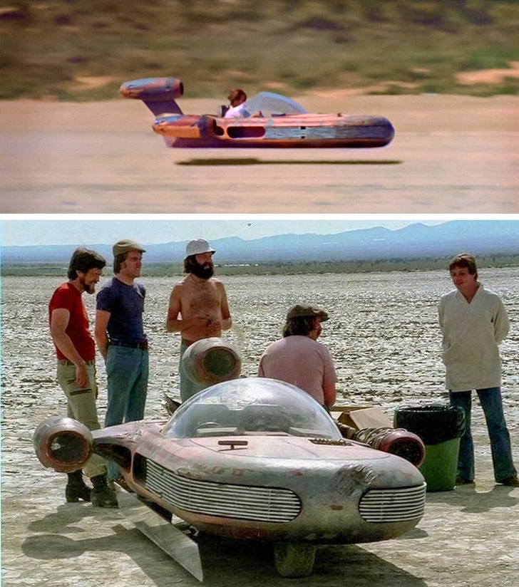 У 1977 році теж могли зобразити на екрані мінливе транспортний засіб: у фільмі «Зоряні війни: Нова надія» Люк Скайвокер мчить над пустелею на своєму спидере, колеса якого прикрили з допомогою простого дзеркала.