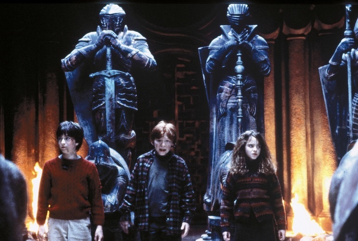 При одному погляді на величезні шахові фігури з «Філософського каменя» можна подумати, що їх домалювали окремо, як і багато інші ефекти у фільмі. Насправді всі ці фігури були відлиті з різних матеріалів за ескізами, а потім до основи декорацій були додані елементи керування. Тому кожною фігурою на дошці знімальна група управляла з допомогою пульта.