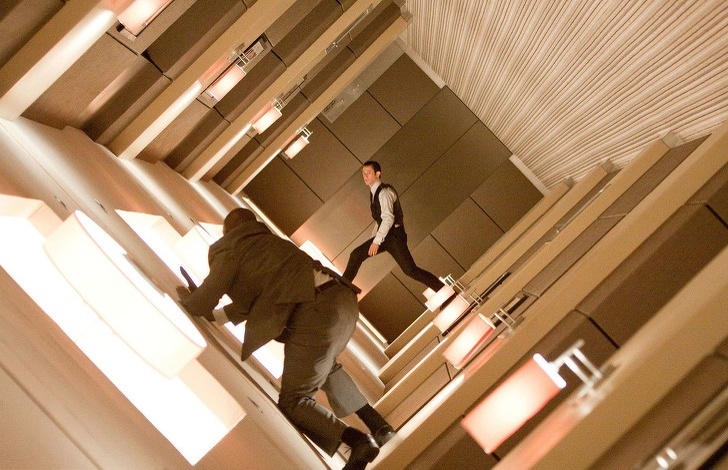 Кожен, хто хоч раз бачив цей фільм, пам'ятає неймовірне битва в коридорі готелю, який буквально перевертається з ніг на голову протягом всієї сцени. Дивно, але такого ефекту режисер Крістофер Нолан домігся без допомоги комп'ютерної графіки. Фахівці з декорацій спеціально створили обертову знімальний майданчик і обладнали її складною системою освітлення, завдяки якій картинка вийшла такою ефектною. Протягом 3 тижнів над цією сценою працювали 500 членів знімальної групи.