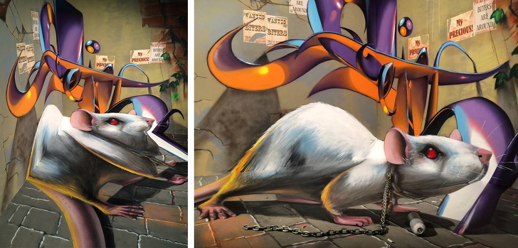 Вуличний художник створює об'ємні графіті, стираючі грань між намальованим і реальним