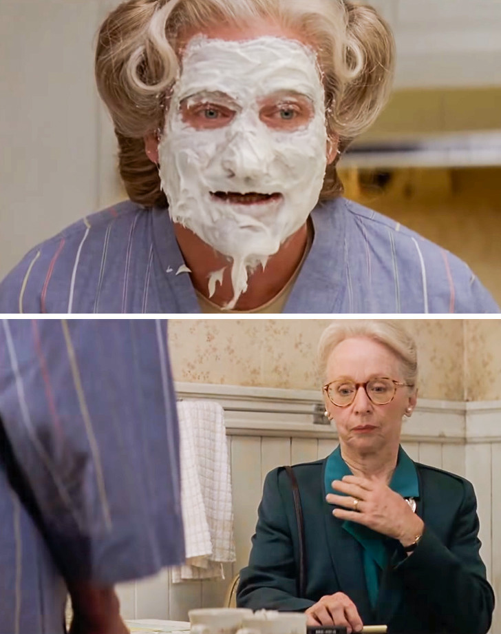 Після того як герой Робіна Вільямса «впав» обличчям в торт, крем з його підборіддя зісковзнув в чашку. Цього не було в сценарії, але актор швидко зорієнтувався і обіграв конфуз, сказавши: «А ось і вершки з цукром», тому дубль вирішено було залишити.