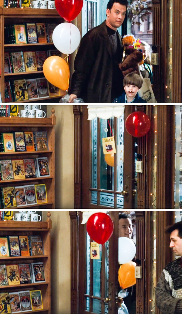 Коли Джо виходить з книжкового магазину, тримаючи в руках повітряні кульки і золоту рибку в пакеті, один з кульок випадково застряє в дверях. Цього не було в сценарії, як і репліки, яку Том Хенкс сказав після конфузу: «Добре, що це була не рибка!» Зйомки хоч і пішли не за планом, але дубль вийшов кумедним, в результаті він і увійшов у фільм.