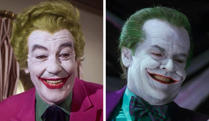 Перший актор, який зіграв Джокера в кіно, — Сизар Ромеро (фільм «Бетмен» 1966 року). Потім лиходієм зі світло-зеленими волоссям і божевільною посмішкою став Джек Ніколсон (1989 рік).