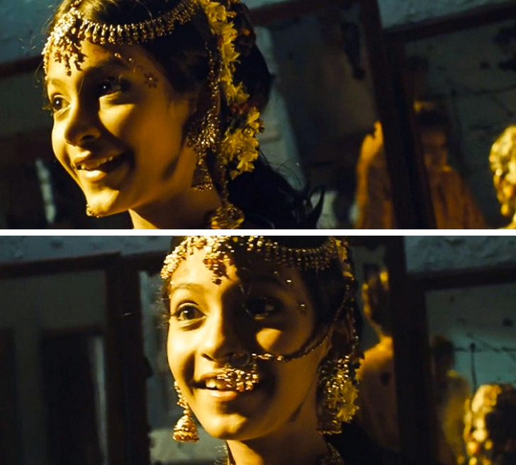 - Коли герої фільму «Мільйонер з нетрів» знаходять у студії Латіку, у неї тобто сережка в носі, то ні.