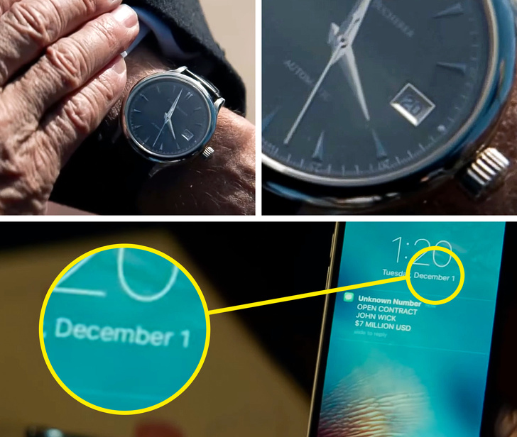 - У фільмі «Джон Двк — 2» на годиннику Вінстона під час його зустрічі з головним героєм ми бачимо дату — 20-е число. Однак за два дні до цього було 1 грудня. Чергові скачки в часі?
