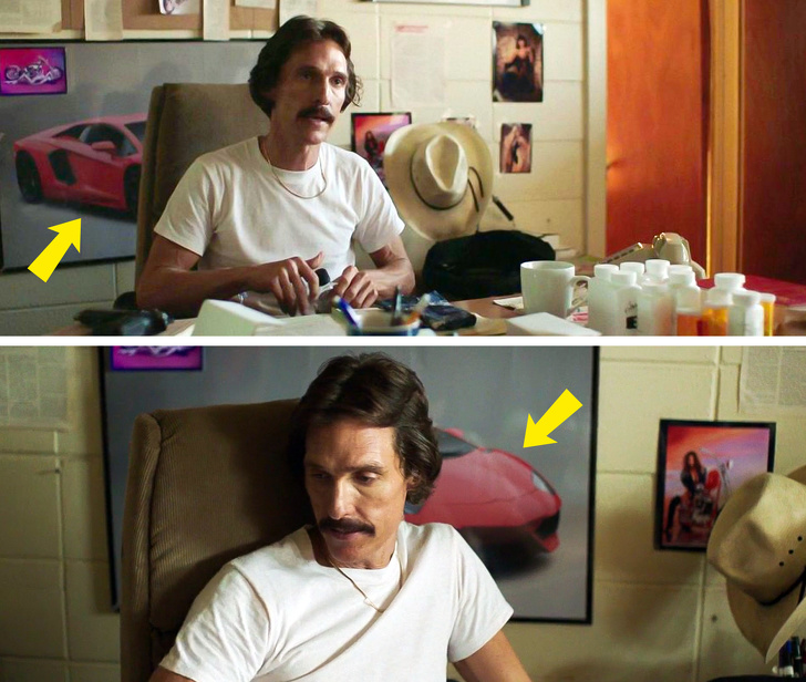 - А ось і ще один анахронізм. В офісі головного героя фільму «Далласський клуб покупців» на стіні висить постер з Lamborghini Aventador. Дія фільму відбувається в 1985 році, однак цю модель автомобіля почали випускати тільки в 2011-м.