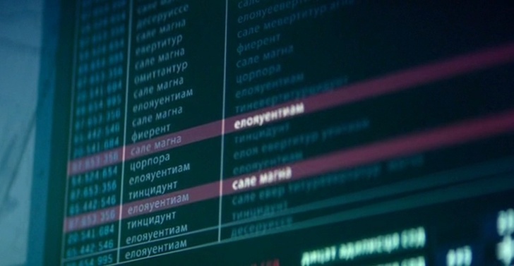 - Творці фільму «22 милі» і зовсім не потрудилися вкласти в текст на табло хоч якийсь сенс — просто набрали кирилицею випадкові літери.
