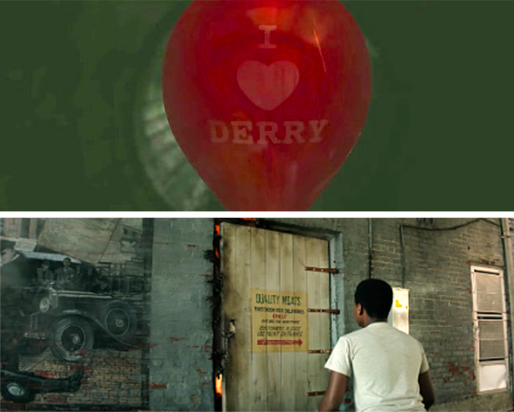 - Ще один не увійшов у кінострічку сюжет перетворили в пасхалку. Перед смертю Патрік, про який вже йшла мова вище, бачить червону кульку з написом «Я ♥ Деррі». Це відсилання до загибелі книжкового персонажа, який носив кепку з точно таким же написом.