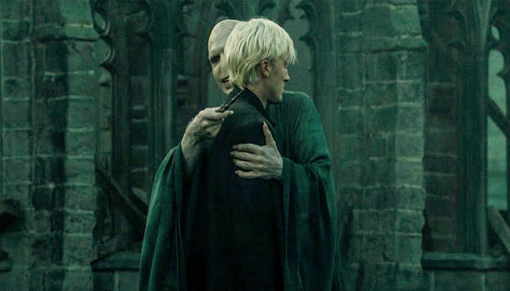 Епізод з «Гаррі Поттера», де Волан-де-Морт обіймає Драко, як би кажучи йому: «Ласкаво просимо додому», — вигадка актора Рейфа Файнса. Згідно сценарію, його герой повинен був просто пройти мимо, але цей варіант здався Файнсу занадто нудним. В результаті сцена вийшла досить незручної і жахливою, адже вона зайвий раз підкреслила, що Темний Лорд абсолютно не здатний на прояв якихось теплих почуттів.