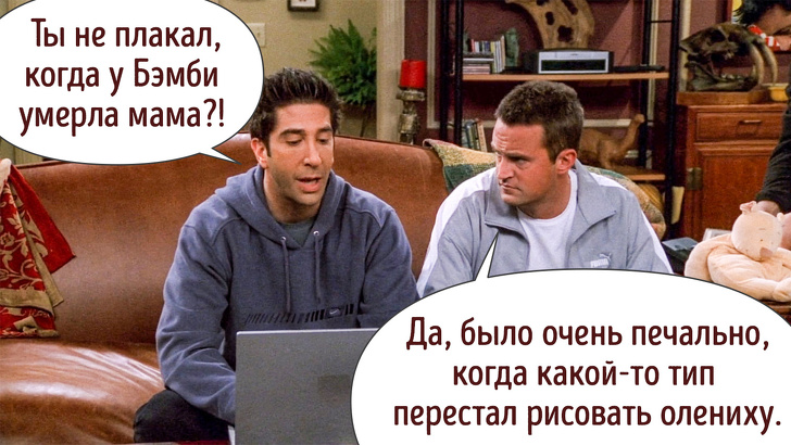 Як ми вже писали, про своїх пернатих вихованців Джо і Чендлер дбали немов про дітей. І хоча у серіалі нам не встигли показати, яким батьком став містер Бін, його ставлення до братів наших менших говорить про те, що і з цією роллю він впорався на ура. Чендлер не боїться брати на себе відповідальність як за вихованців, так і за людей. Пам'ятаєте, він навіть готовий був завести собаку (хоча не любить цих тварин), лише б Моніка перестала плакати? Не хлопець, а мрія.