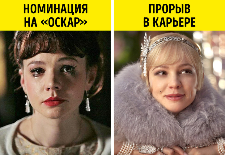 Кері Малліган — номінантка на премію «Оскар» і «Золотий глобус» за роль у фільмі «Виховання почуттів». Але справжнім проривом у кар'єрі молодої британської актриси стала роль у фільмі База Лурмана «Великий Гетсбі», завдяки якій про неї дізнався масовий глядач. Актриса ретельно підходить до вибору проектів, в яких знімається, тому в її фільмографії не так багато картин. Але зате це все гідні акторські роботи, які заслуговують уваги.