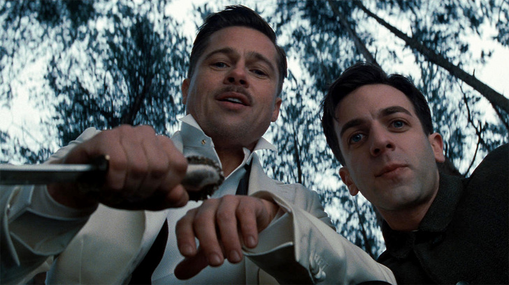 У кожному попередньому фільмі Тарантіно, вийшов до "Безславних виродків", обов'язково присутній кадр, в якому камера дивиться на акторів з багажника або капот автомобіля. У цьому фільмі такого кадру немає, проте є практично ідентичний: це вид від першої особи тих, у кого на лобі виродки вирізали свастику.