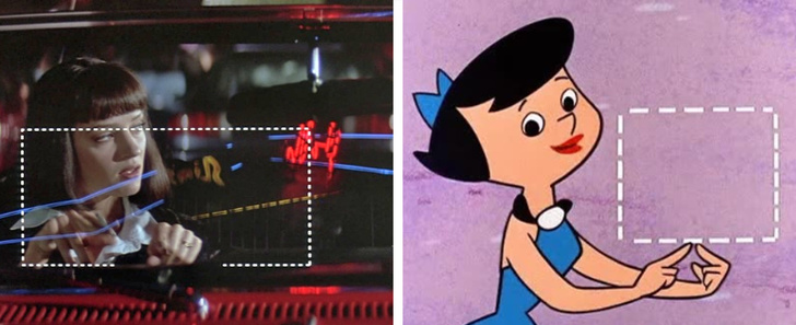 - Пам'ятаєте момент, коли Міа і Вінсент Вега їдуть в машині, Міа говорить йому: «Не будь таким...» і малює пальцями прямокутник? Тим самим вона натякає на сталий вираз «don't be a square», яке означає «Не будь занудою» (або «Не будь квадратом», якщо перекладати дослівно). Тарантіно обожнює використовувати в своїх роботах відсилання, так сталося і з цією сценою: ідею він запозичив з мультсеріалу «Флінстоуни». Ще більше посилань у фільмах Тарантіно можна знайти тут.