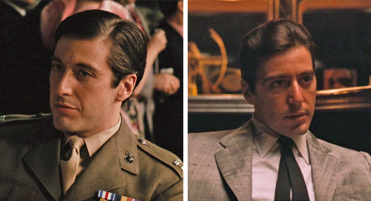 На початку «Хрещеного батька» ми бачимо молодого Майкла Корлеоне: йому не подобається специфічна професія батька, він підкреслює свою відмінність від сім'ї. В той час як батько і брати носять класичні костюми, Майкл постає перед нами у військовій формі. Разом з тим як Майкл все сильніше занурюється в гангстерський світ, військова форма зникає з його гардеробу і поступається місце все більш елегантним костюмах.