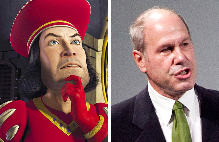 Головний лиходій з першого мультфільму про Шрека лорд Фаркуад теж отримав свою зовнішність завдяки старої сварці двох кінобосів. Колишній голова конгломерату Disney Макл Айснер і продюсер цієї ж компанії Джеффрі Катценберг дуже не любили один одного. Дійшло до того, що Катценберг звільнився і організував власну студію — DreamWorks.