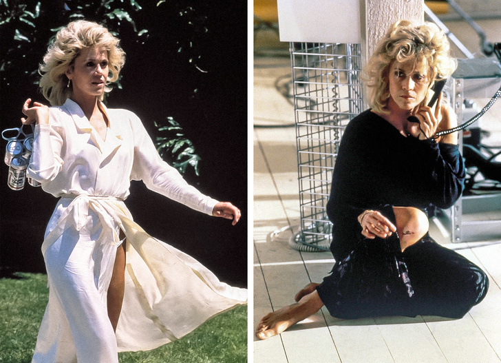 Приклад впливу фону на характер: одяг доповнює обстановку, акцентує увагу на героїні Джейн Фонди. Глядачі такі дрібниці зазвичай не фіксують, але хтось продумав їх для нас. Фільм «На наступний ранок», 1986 р.