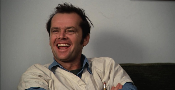 Культовий фільм, який не потребує представлення. Чистий американський англійський, колючі фрази, моторошні крики пацієнтів лікарні і незрівнянний Джек Ніколсон у головній ролі.