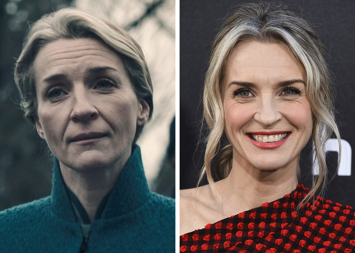 Актриса, яка так переконливо зіграла похмуру і непривітну жінку командора Фреда, в житті виявилася дуже привабливою дівчиною з заразливою посмішкою. За сюжетом героїня Івонн не може мати дітей, а от сама актриса не так давно народила малюка.