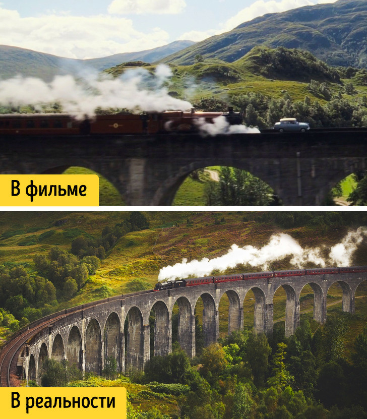 Киносагу про знаменитого хлопчика-чарівника знімали протягом 10 років. Фільми, що розповідають про дружбу, відвагу і самопожертву, запам'яталися глядачам ще й приголомшливими пейзажами. Здається, ніби деякі з цих замків і ландшафтів можуть існувати тільки в казці. Проте на Землі є місця, які могли б позмагатися в красі з кадрами з фільмів.