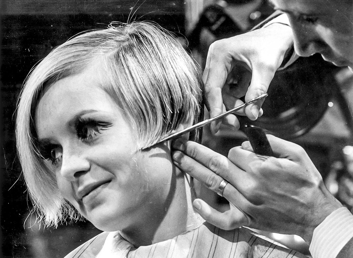 Нікому не відому Леслі Хорнбі друг привів в перукарню до популярного тоді майстру Леонарду, який шукав модель для нової стрижки. «Її волосся були довгими, розпатланими і жалюгідними. Ми довго не могли вирішити, що з нею робити», — згадував перукар.