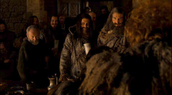 В 4-му епізоді ми бачимо сцену, в якій Тормунд нахвалює Джона Сноу. За його спиною стоять кілька здичавілих і Давос. Серед цих здичавілих сховалися творці і шоураннеры «Ігри престолів» Ден Уайсс і Девід Беніофф.