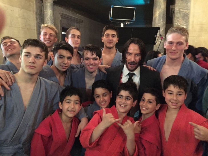 Після зйомок сцени з маленькими акторами для «Джона Уіка — 3» Кіану Рівз залишився і зробив фото з усіма хлопцями