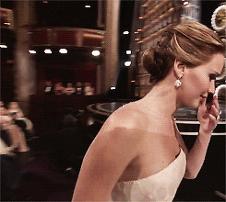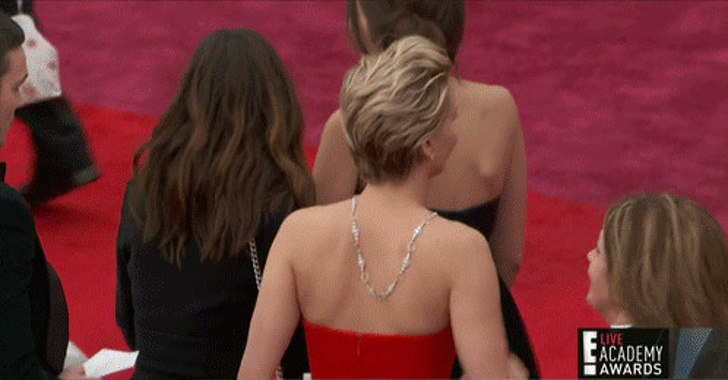 А тут Дженніфер Лоуренс не встояла на ногах на червоній килимовій доріжці в честь тієї ж премії «Оскар», але вже в 2014 році