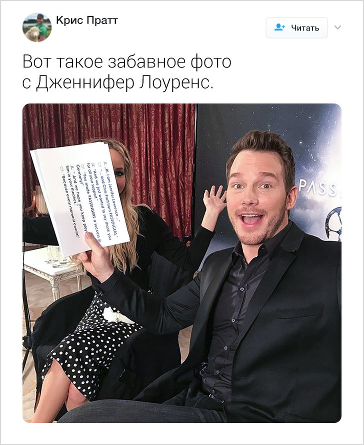 Кріс Пратт радує фанатів фотографіями з Дженніфер Лоуренс
