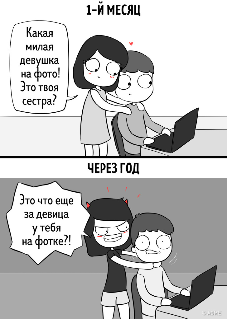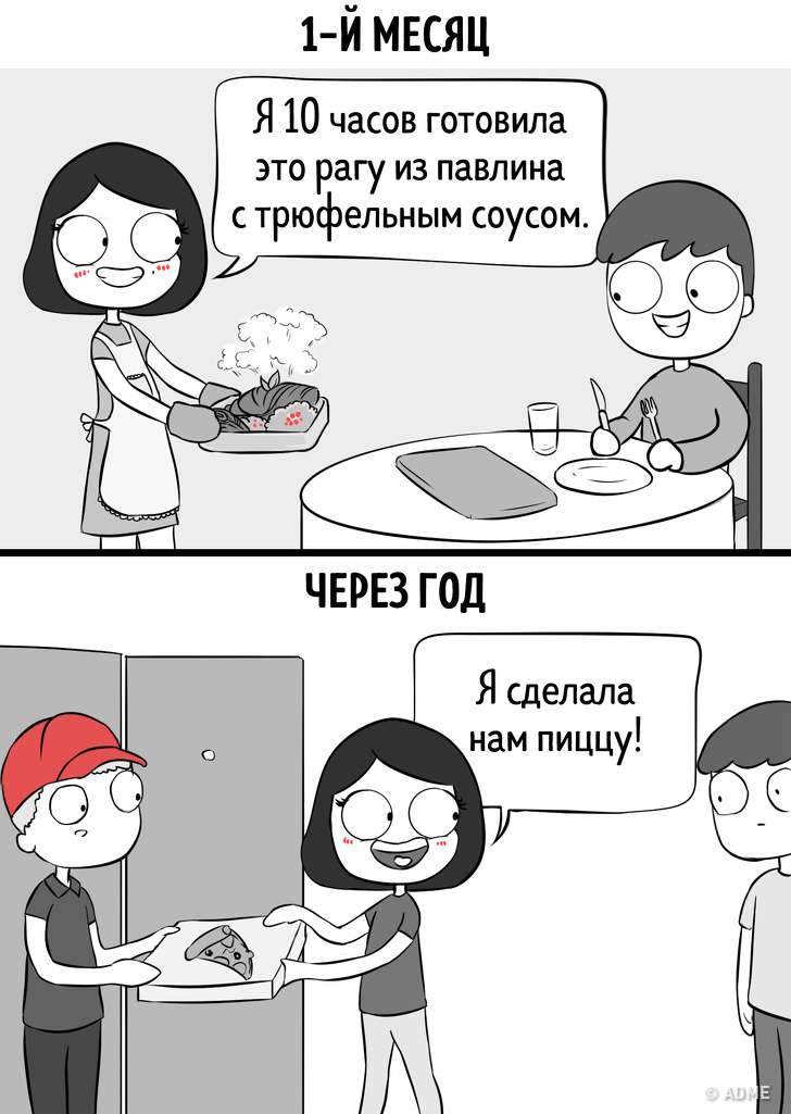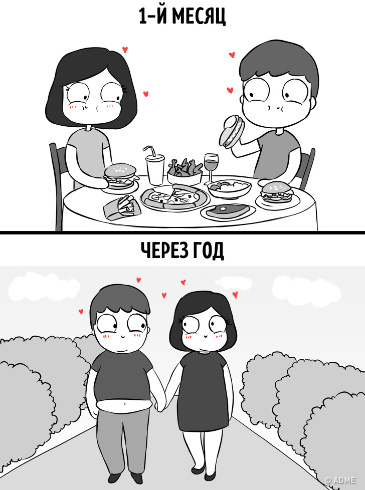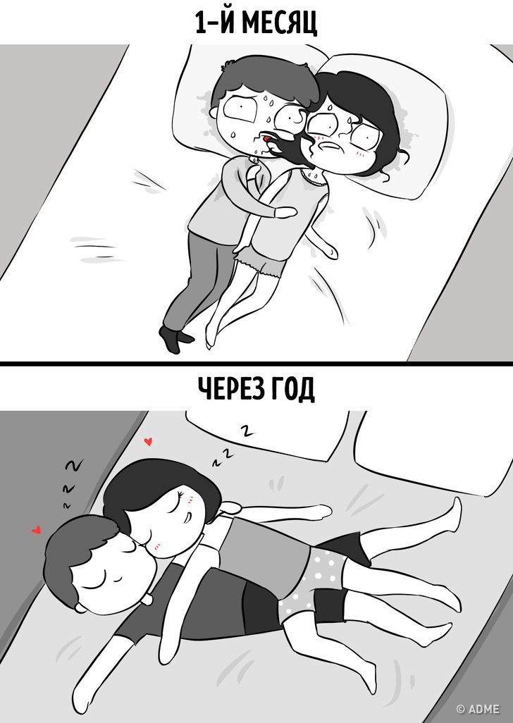 11 коміксів про те, як виглядають стосунки закоханих в 1-й місяць і через 1 рік