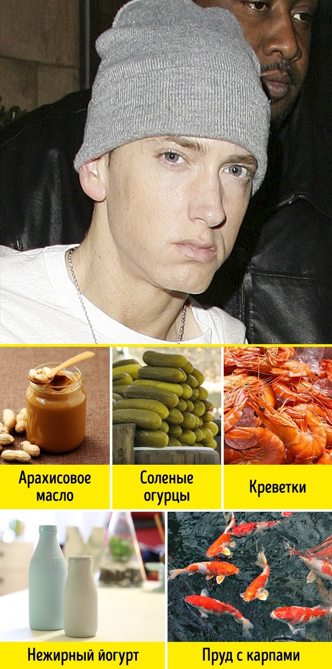 Одного разу він зажадав, щоб організатори заходу зробили за сценою ставок, наповнений живими коропами. На перший погляд, досить дивне бажання, адже Ем не надто схожий на цінителя подібних розваг, але виявилося, справа в іншому. За визнанням колег, у музиканта зовсім немає друзів і риби заповнюють цю прогалину.