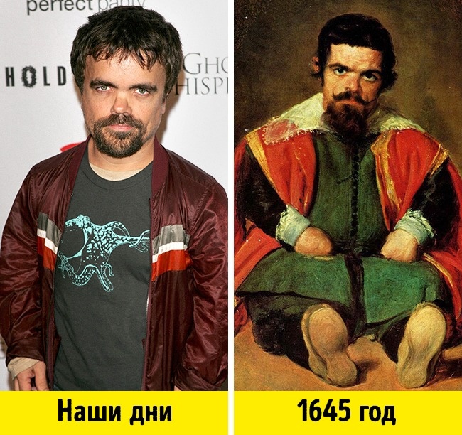 Пітер Дінклейдж і його двійник з минулого дон Себастьян де Морра з картини Дієго Веласкеса.
