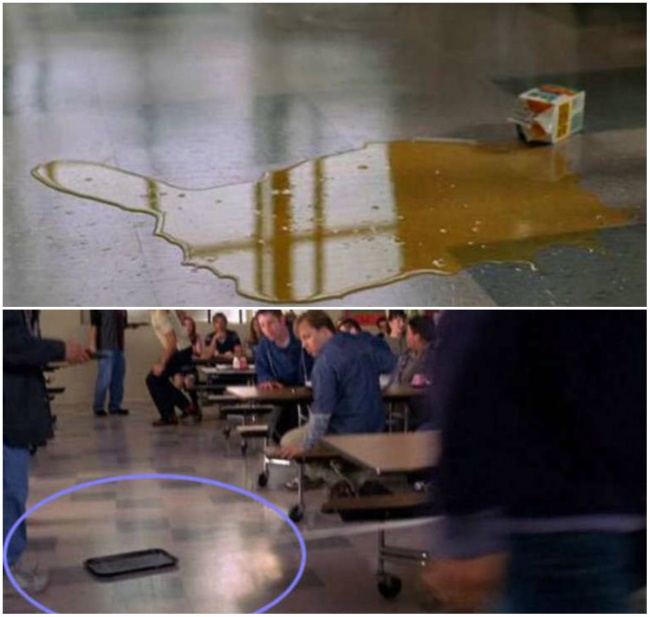 Мері Джейн у цьому епізоді сковзається на пролитом соку, проте в наступному кадрі соку вже немає. На чому ж вона посковзнулася?