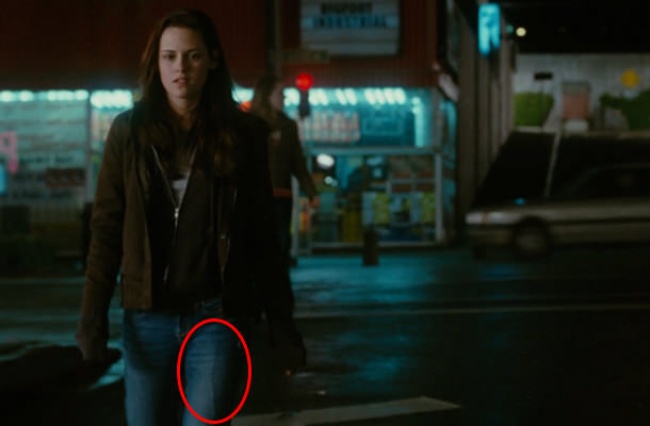 В кадрі видно, як дріт мікрофону проходить через джинси Белли.