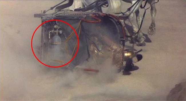 В одній з найбільш епічних сцен фільму, який отримав «Оскар» за кращі візуальні ефекти, можна помітити газовий балон на перевернутої колісниці.