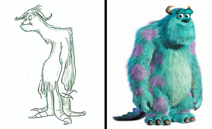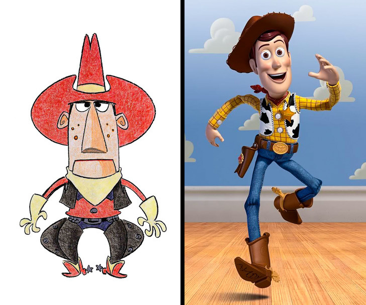 Колись у здорованя Ральфа з однойменного мультфільму не було пальців, а Базз Лайтер з «Історії іграшок» вже дуже скидався на "Залізного" людини. Важко таке уявити, правда? І адже це не вигадка, а лише опис перших ескізів цих персонажів. Ельза, Белль, Еластику і багато інші герої наших улюблених мультфільмів теж виглядали зовсім інакше на етапі ідеї.