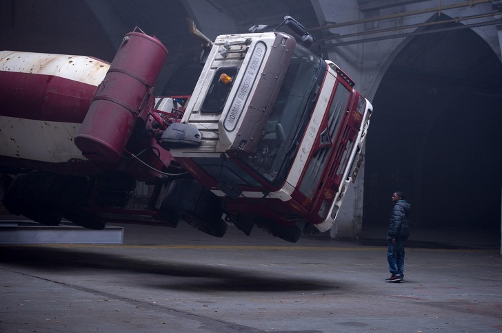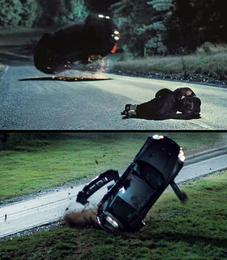 Складно повірити, що ширяє в повітрі вантажівка не результат використання CGI. Але насправді кінематографісти прикріпили цементовоз до великої гідравлічної установки. Вона керувалася програмою, яка дозволяла змінювати швидкість та напрямок руху. Таким чином, вантажівка міг підніматися, опускатися і крутитися в усіх напрямках, і це незважаючи на його значну вагу — близько 14 тонн.