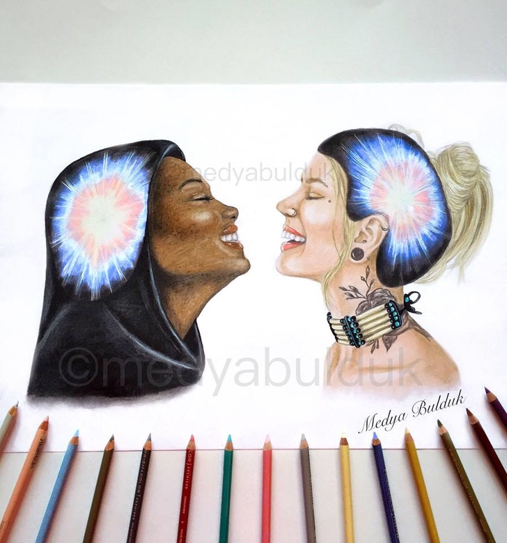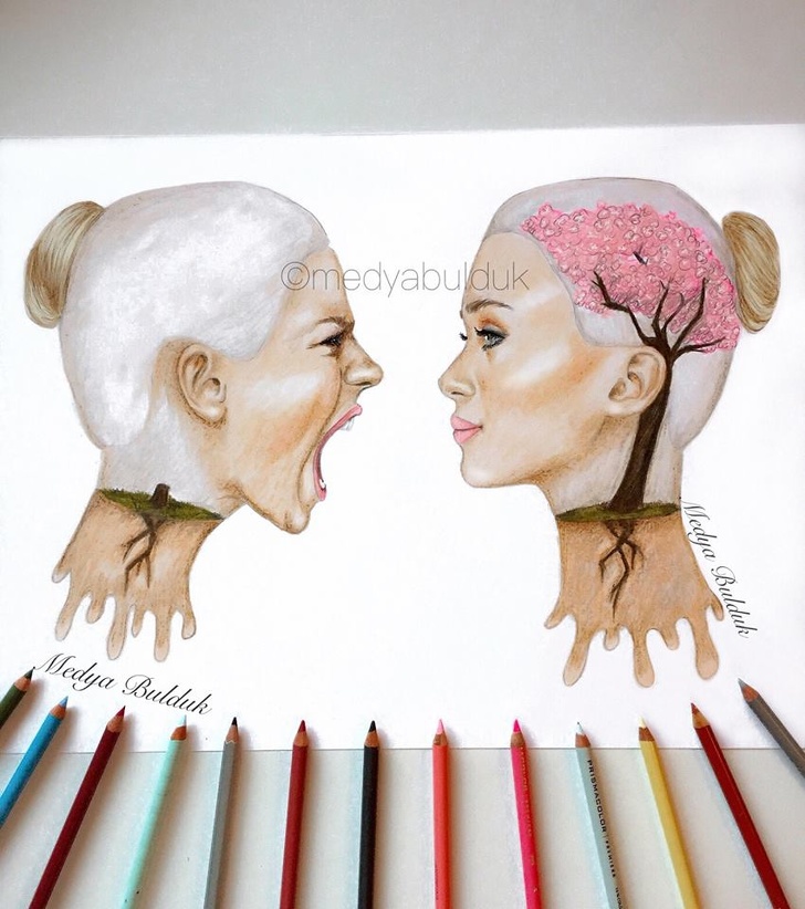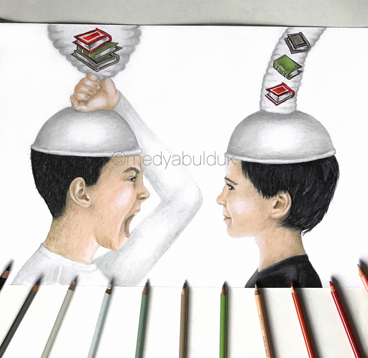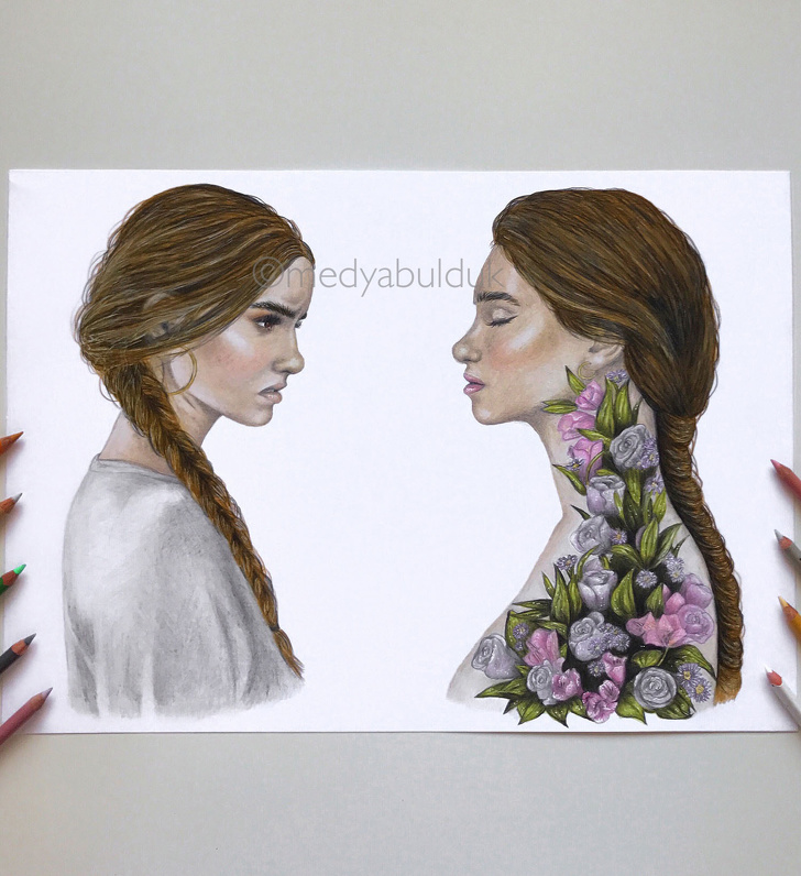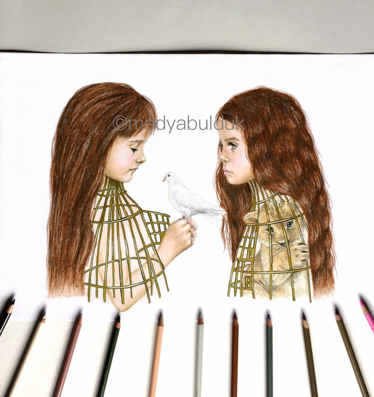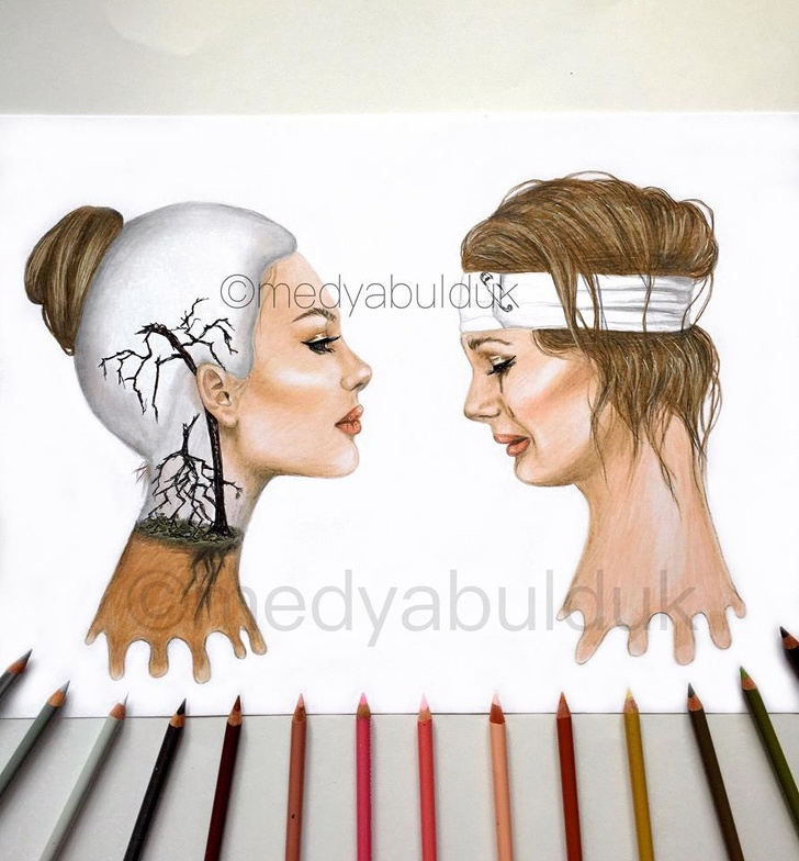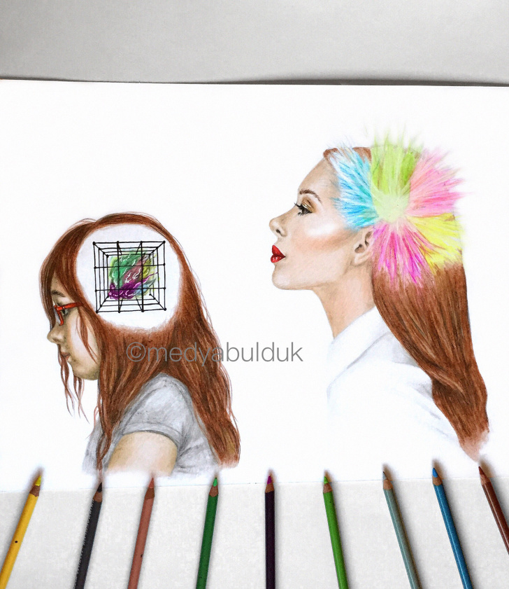 Художниця і письменниця Медіа Булдук живе у Стокгольмі. Нещодавно вона почала ділитися з передплатниками незвичайними роботами. На них Медіа показує відмінність людей у сприйнятті світу. У своєму инстаграме і на сайті художниця доповнює кожну картину глибоким коментарем і закликає передплатників замислитися про своїх почуттях і діях. Кожен з нас може вибрати життєвий шлях, і Медіа нагадує, що це рішення має бути усвідомленим.